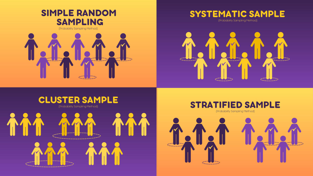 b. Systematic Sample: With order/system.All employees of the company are listed in alphabetical order. From the first 10 numbers, you randomly select a starting point: number 6. From number 6 onwards, every 10th person on the list is selected (6, 16, 26, 36, and so on), and you end up with a sample of 100 people.